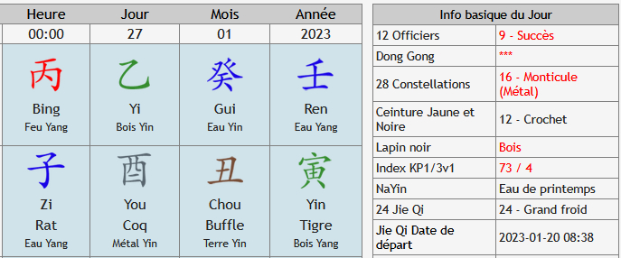 Par contre, si vous êtes à la recherche du moment le plus opportun pour lancer ce projet, le rendre visible aux yeux de la société, alors ce sera le Tong Shu que je vous proposerai.